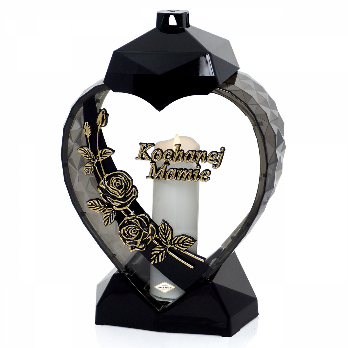 Piękny i elegancki znicz w kształcie serca, który stanowi wyjątkowy symbol miłości i pamięci o Mamie.