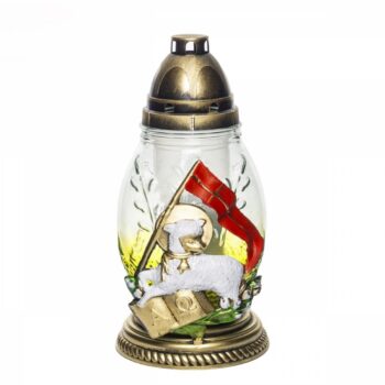 Znicz nagrobny Wielkanocny „Baranek” – złoty z aplikacją